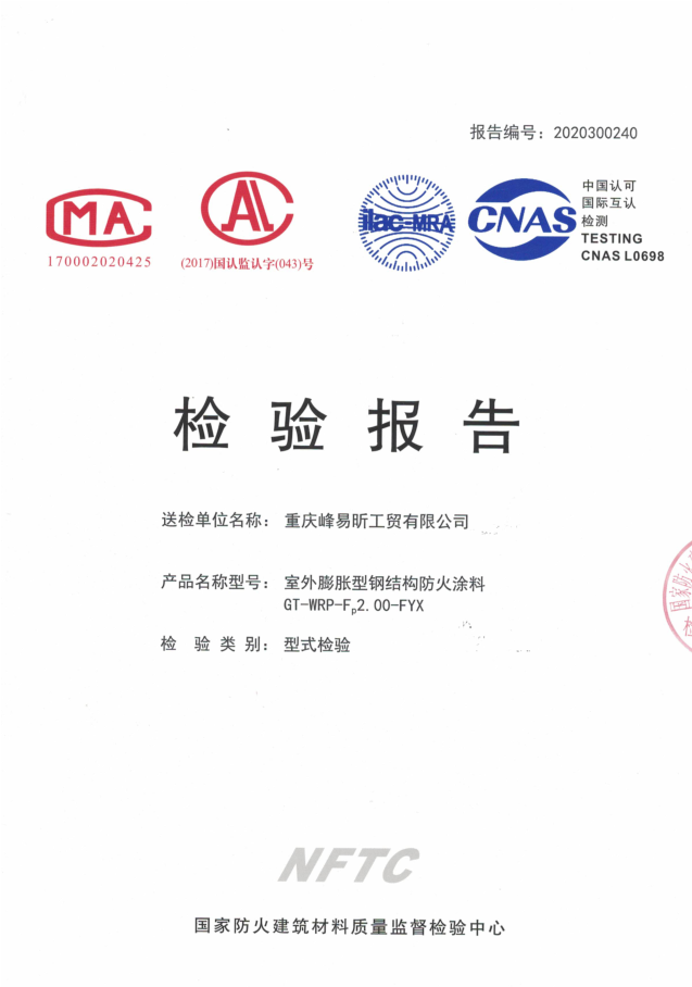 • 室外膨脹型鋼結構防火涂料GT-WRP-Fp2.00-FYX